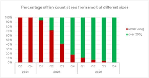 The biomass is gradually improving as the operation transitions to a higher share of high-quality smolt. This strategic shift is expected to enhance overall fish health and growth rates, leading to a more robust and sustainable aquaculture environment.